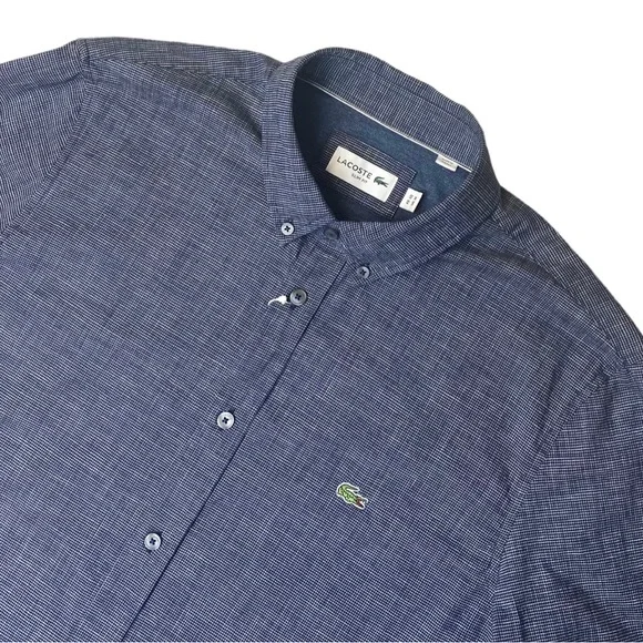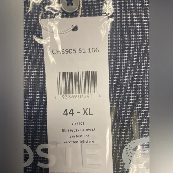 About UsGUARANTEE OF NOVELTY & AUTHENTICITYClutch Sports only sells authentic brands and new, unused products. Any concern or question about the authenticity or quality of any of our products may be directed to our message inbox and we will gladly assist you.Product DetailsLacoste Mens Slim Fit Button Down Long SleeveStyle No. CH6905-51-166Color Navy BlueMaterial 99% Cotton / 1% ElastaneNew with tags in original packaging